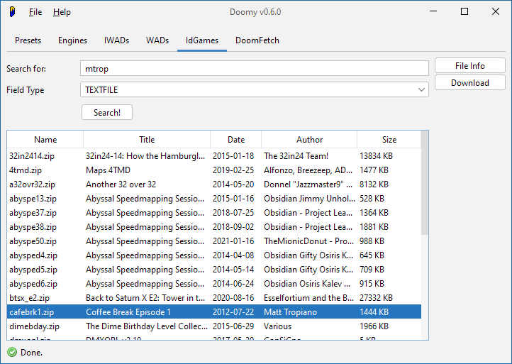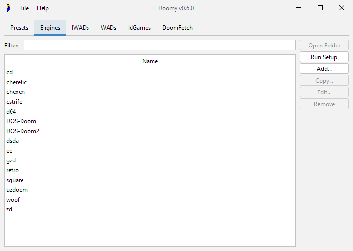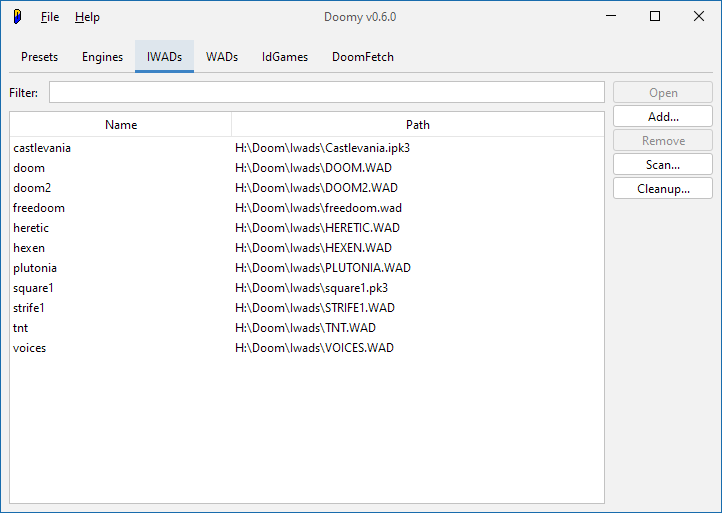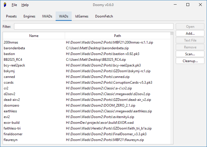 As for WADs and IWADs and Engines, that's for you to decide - Doomy makes no assumptions about how you organize your Doom collection, though it works best on an organized hierarchy of folders.